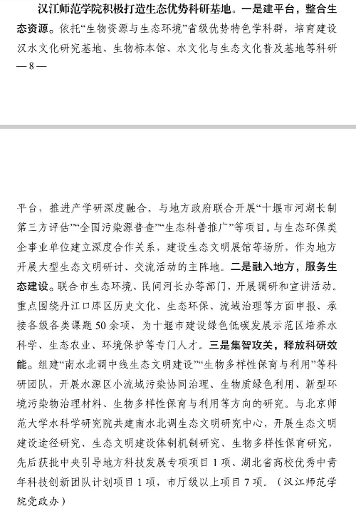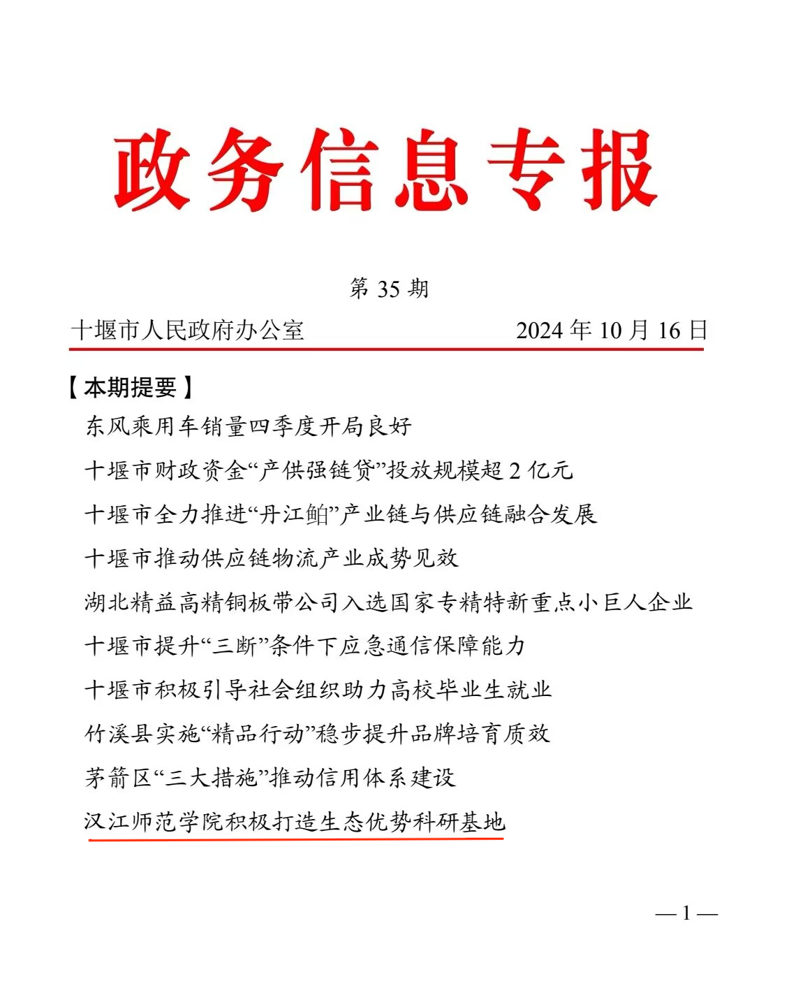 近日,从十堰市政府办公室第35期政务信息专报中获悉,我校报送的《wedvictor伟德积极打造生态优势科研基地》一文被采用,并报送至省政府办公厅。